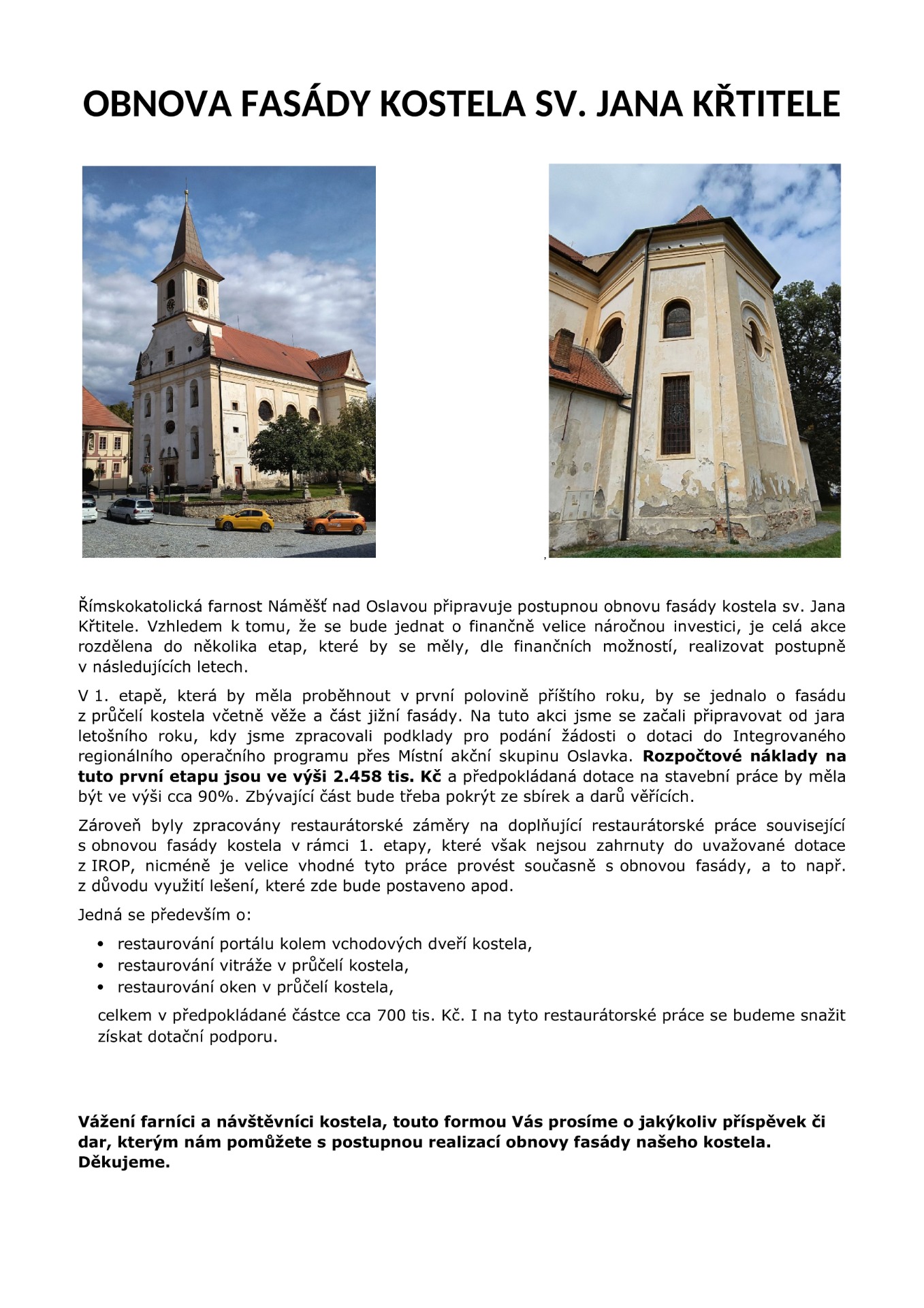 V neděli 28. 12. 2025 na Svátek Svaté Rodiny obnovilo v kostele sv. Jana Křtitele při mši svaté 42 párů svoje manželské sliby. Připomněli si tak slib, který si vzájemně dali při svatebním obřadu, kde si slíbili lásku, úctu a věrnost, že se nikdy neopustí a že spolu ponesou všechno dobré i zlé až do smrti. Po mši...