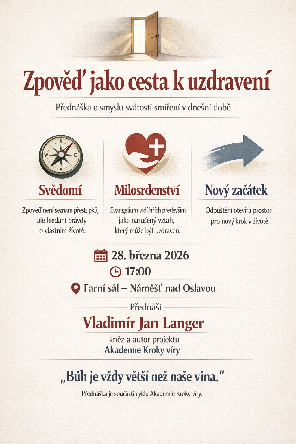 Celostátní setkání mládeže se v České republice koná přibližně jednou za pět let. To nejbližší proběhne letos v srpnu v Ostravě. Přihlašovat se můžete od 31. ledna. Setkání je určeno pro mladé lidi od 14 do 26 let, kteří chtějí prožít několik dní ve společenství svých vrstevníků. Do Ostravy jsou zváni od 11. 8. do 16. 8. 2026....